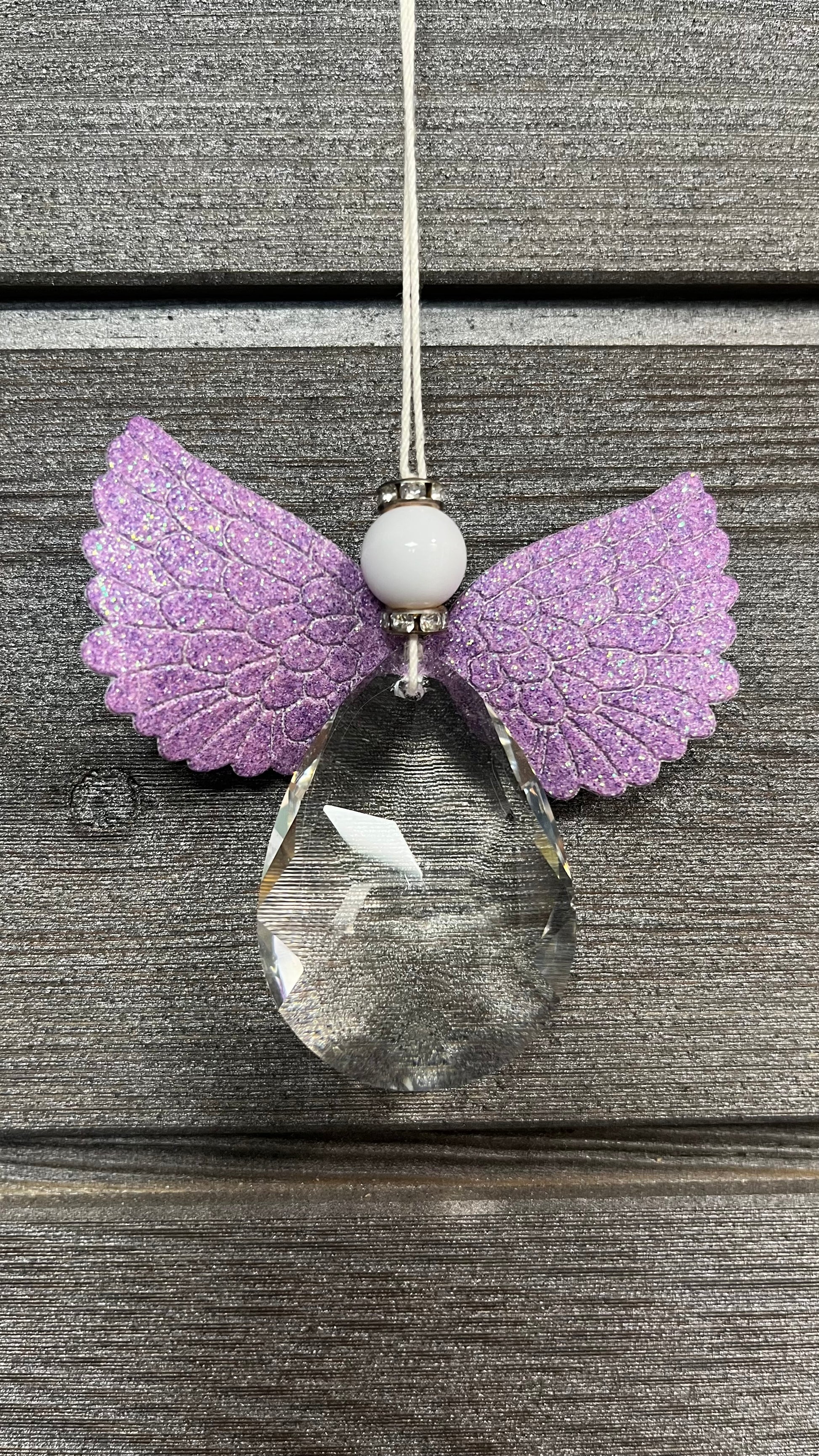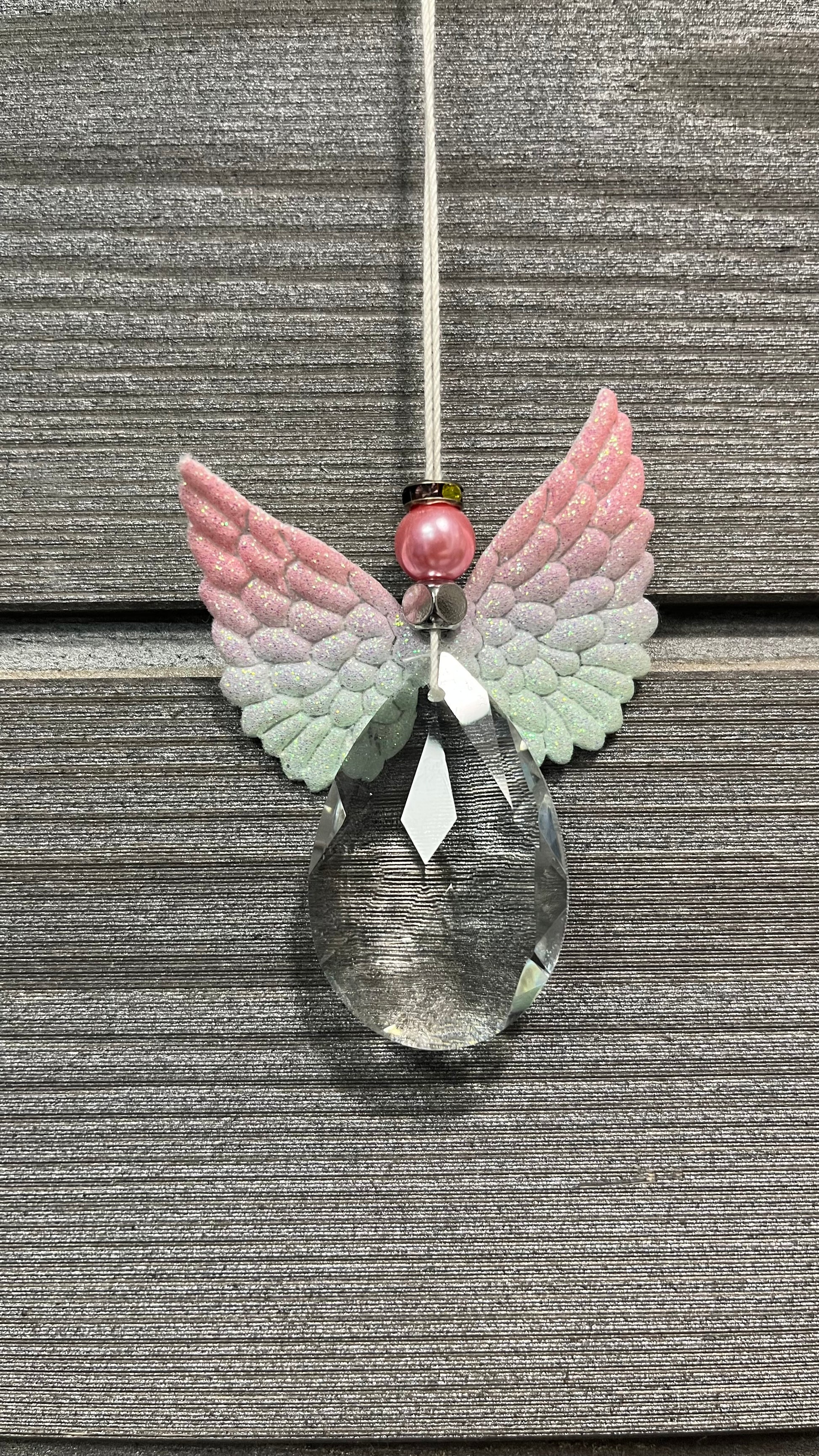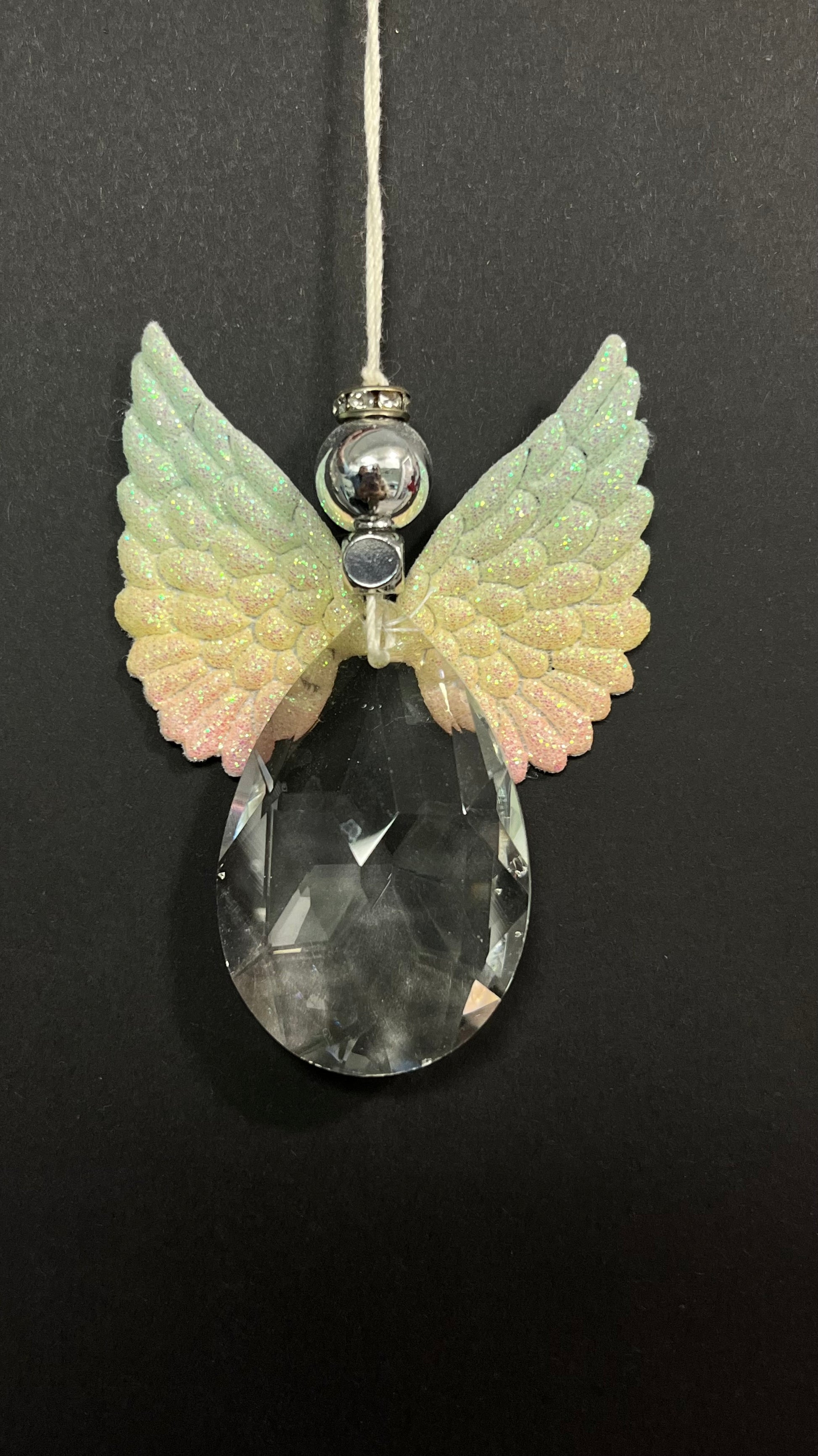 Kauniit enkeli kristalleista. Siipien väri vaihtelee, myös pään ja sädekehän värit.