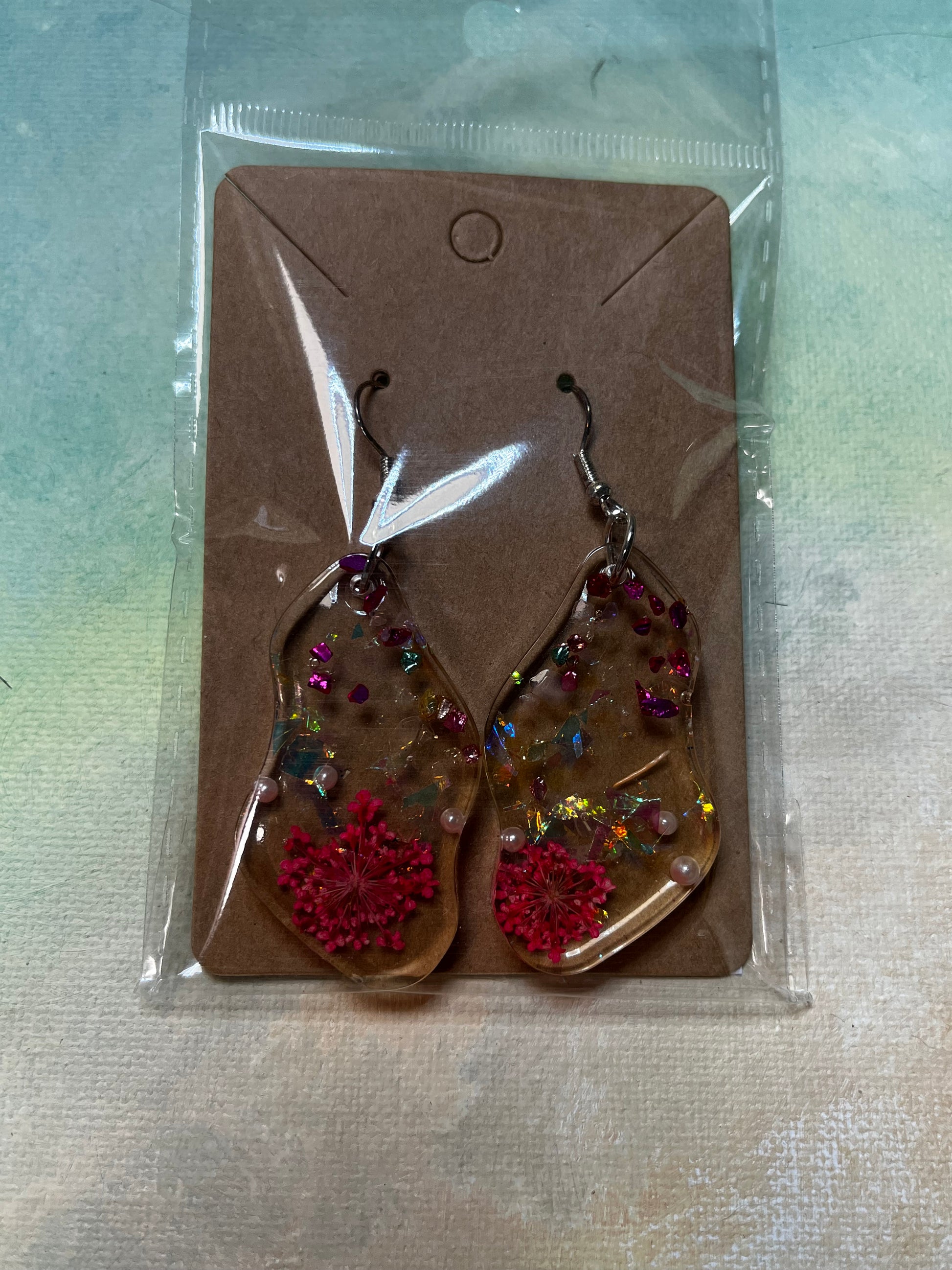 Kauniit korvakorut epoksilla, kuivakukilla, helmillä ja hileillä valmistettu. Kaikissa koruissa lukot.