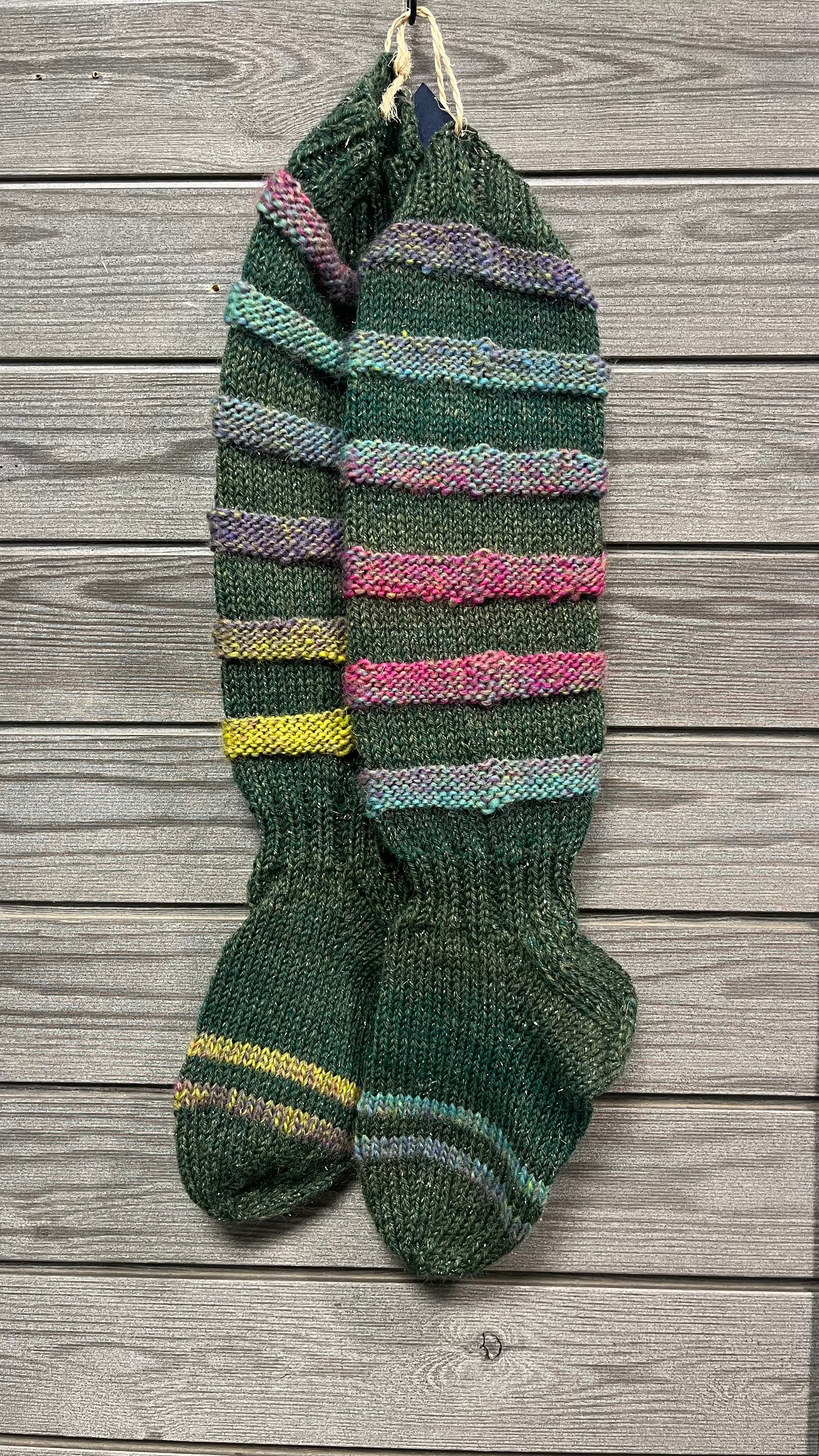 Värikkäät villasukat. Eri pituisia. Lankana on sukkalanka ja/tai 7-veljestä.